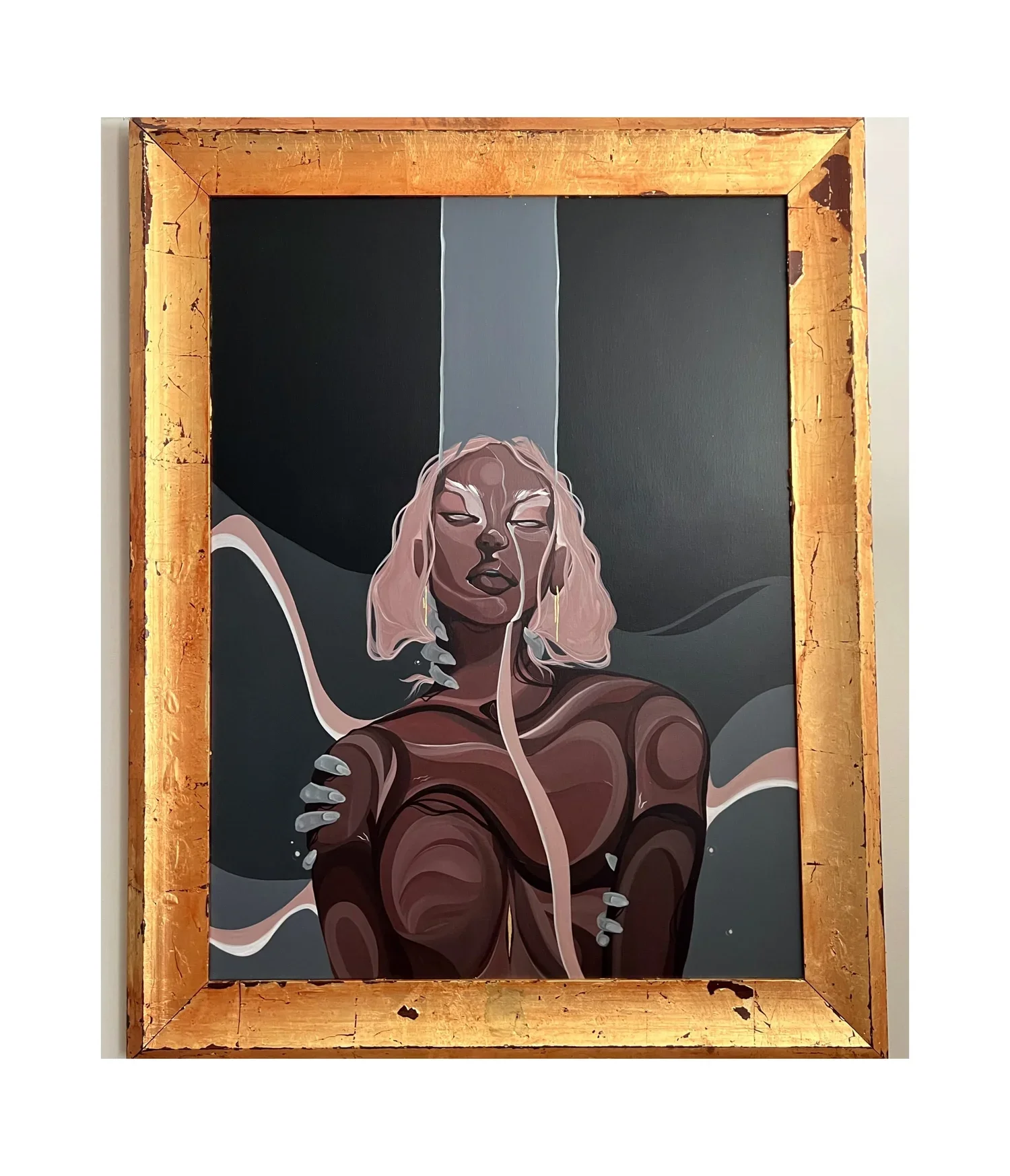 Using the largest canvas I’ve worked to date, (60x40) this was the most difficult and time consuming, yet rewarding piece thus far. Entirely free-handed with acrylics, and given a poetic narrative.