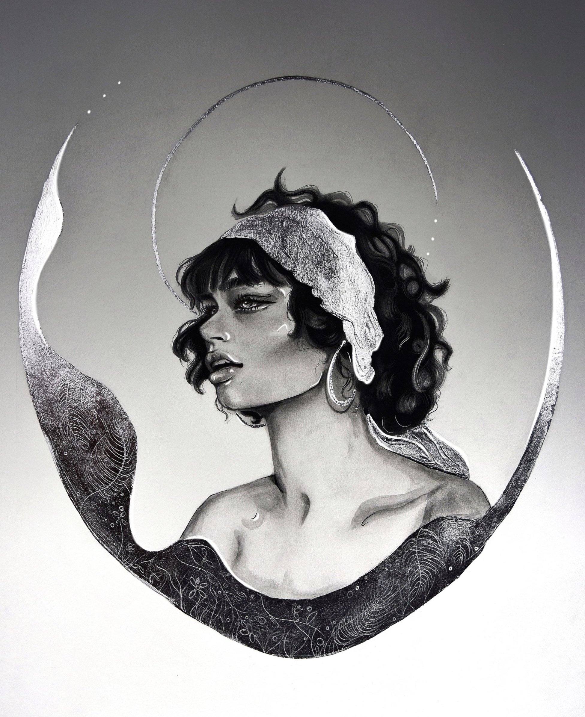 “Raven Armstead, aka Rave of “Rave Sake Studios", is a self-studied traditional artist from Atlanta, GA, now Huntsville, AL based. She spends most of her time learning, crafting and sharing Fine Art pieces and prints that focus on expression, connection and flow. This art has been her therapy since childhood and as of 2021 is her full time job.