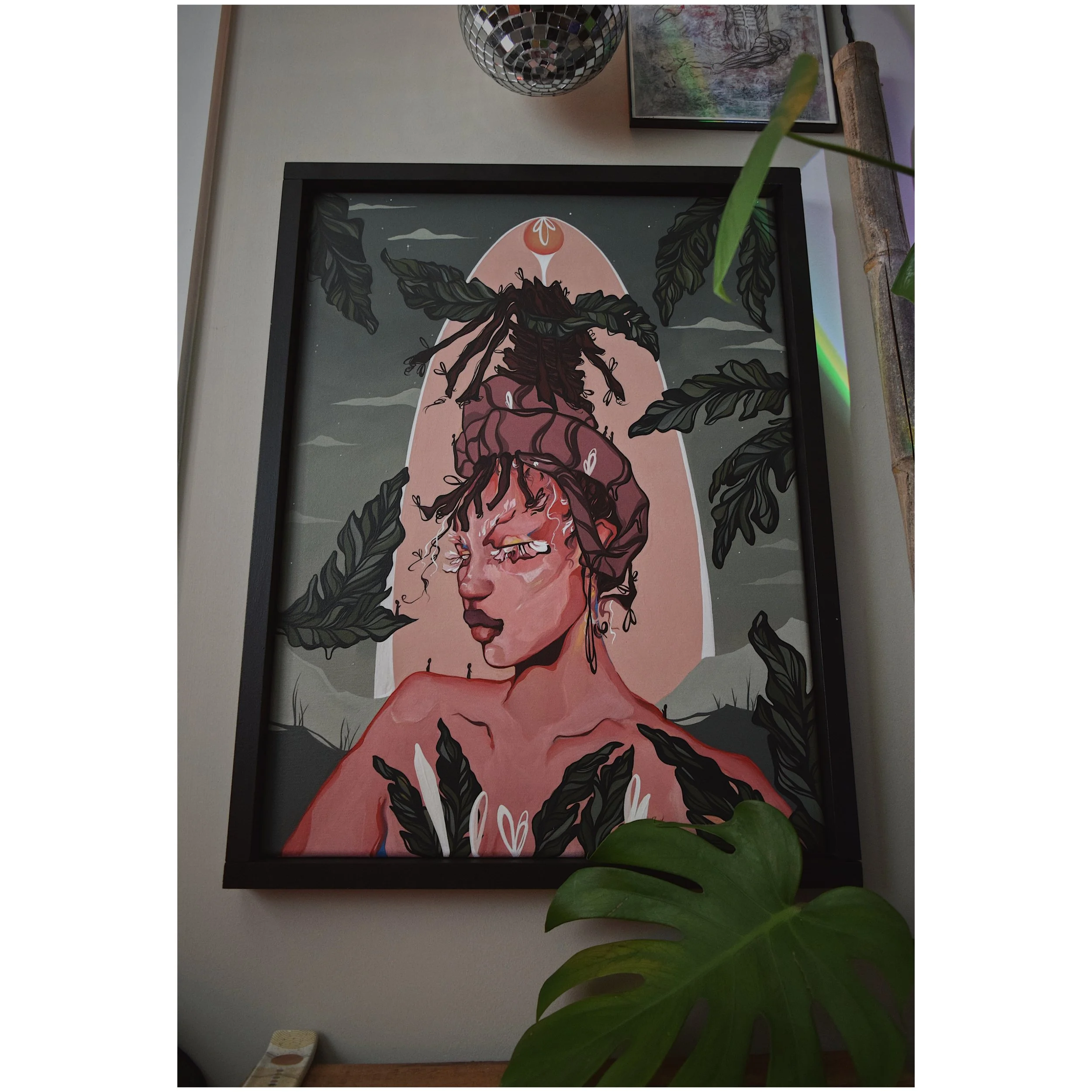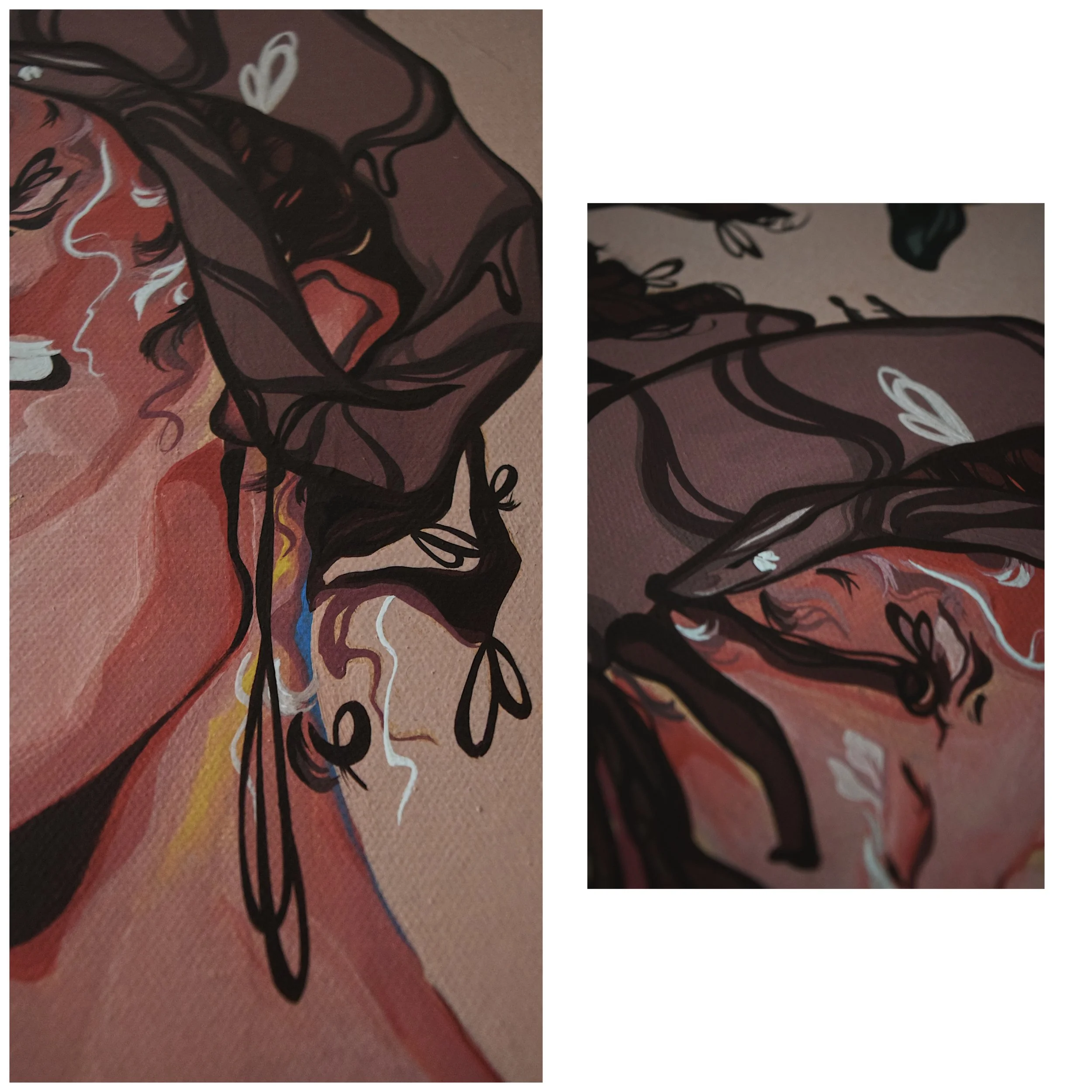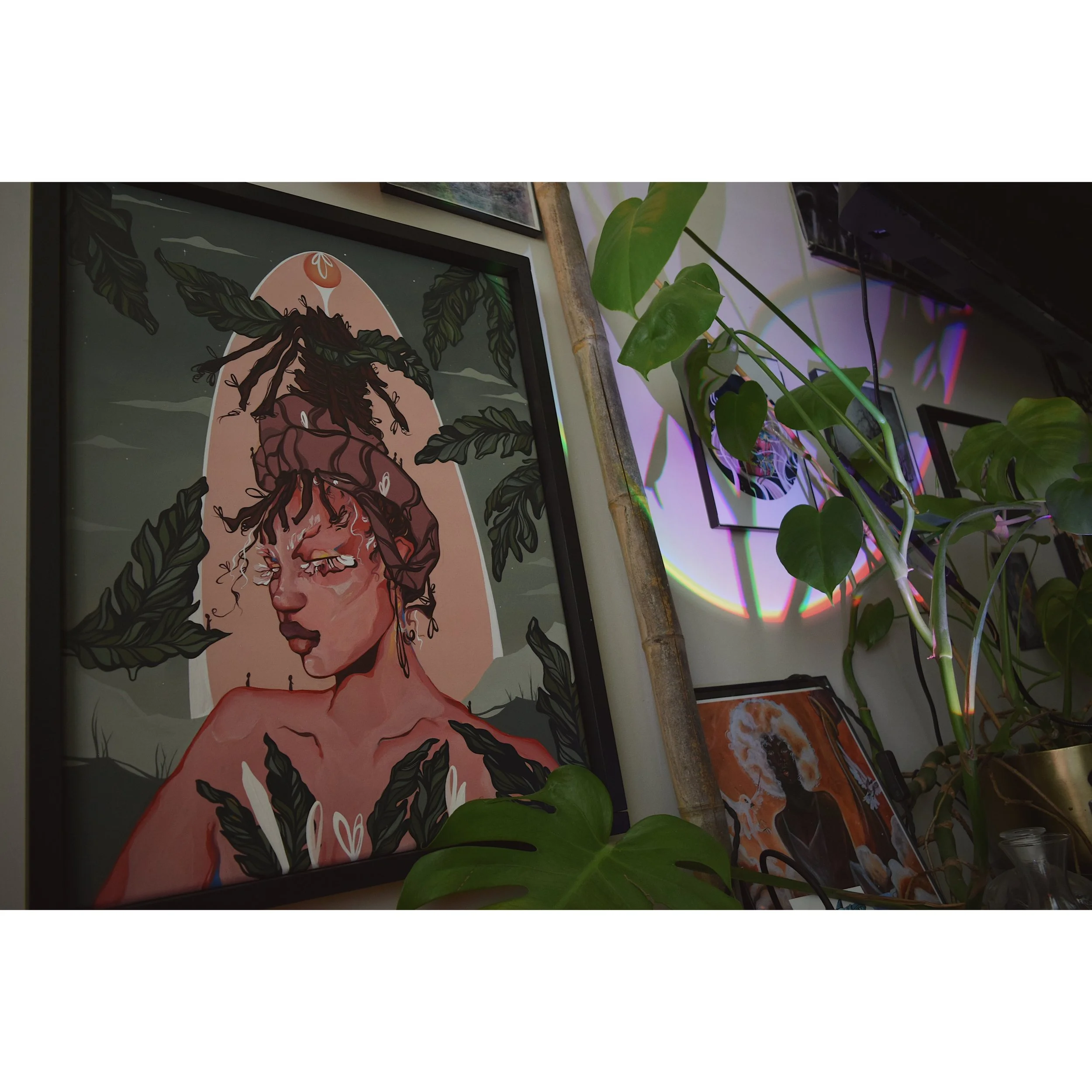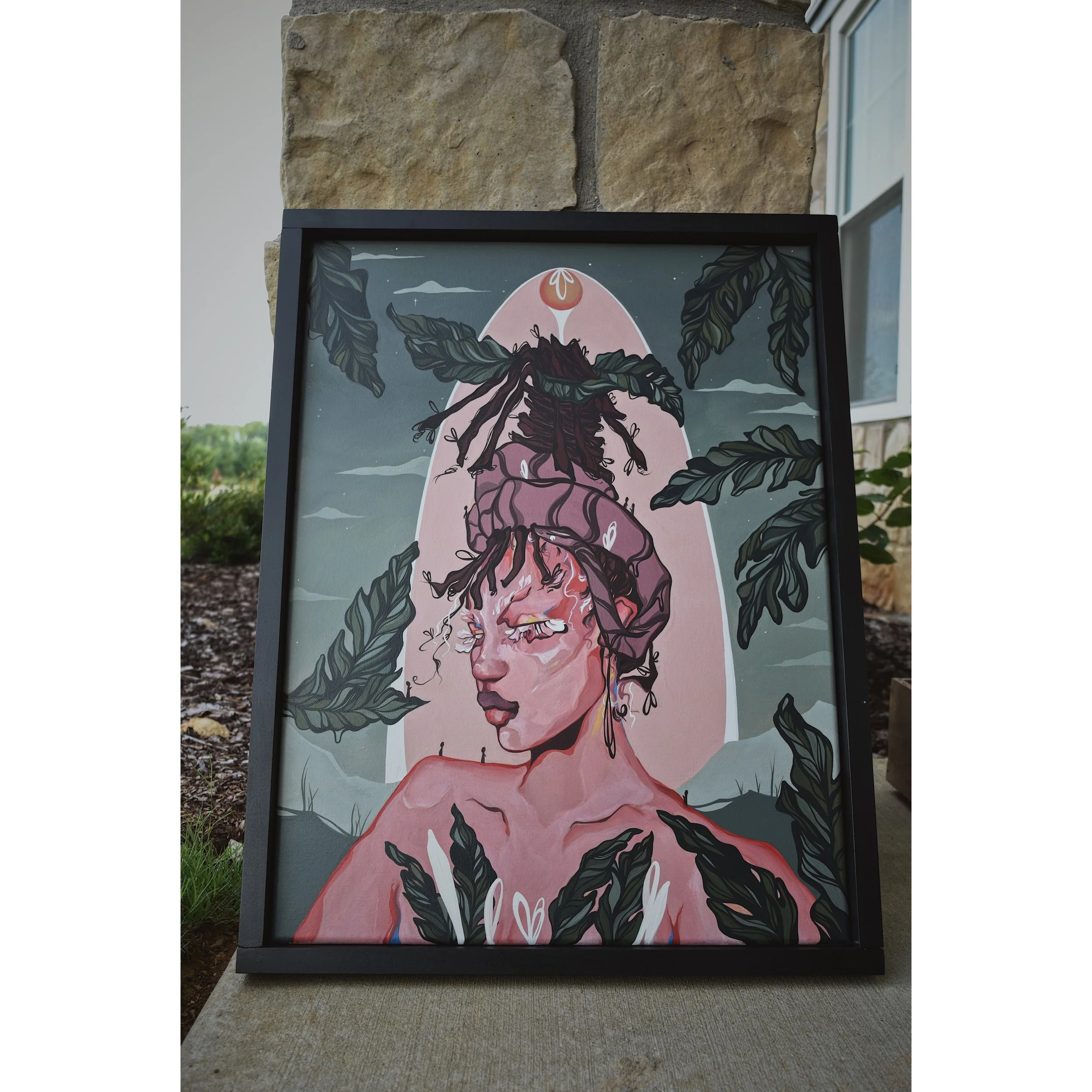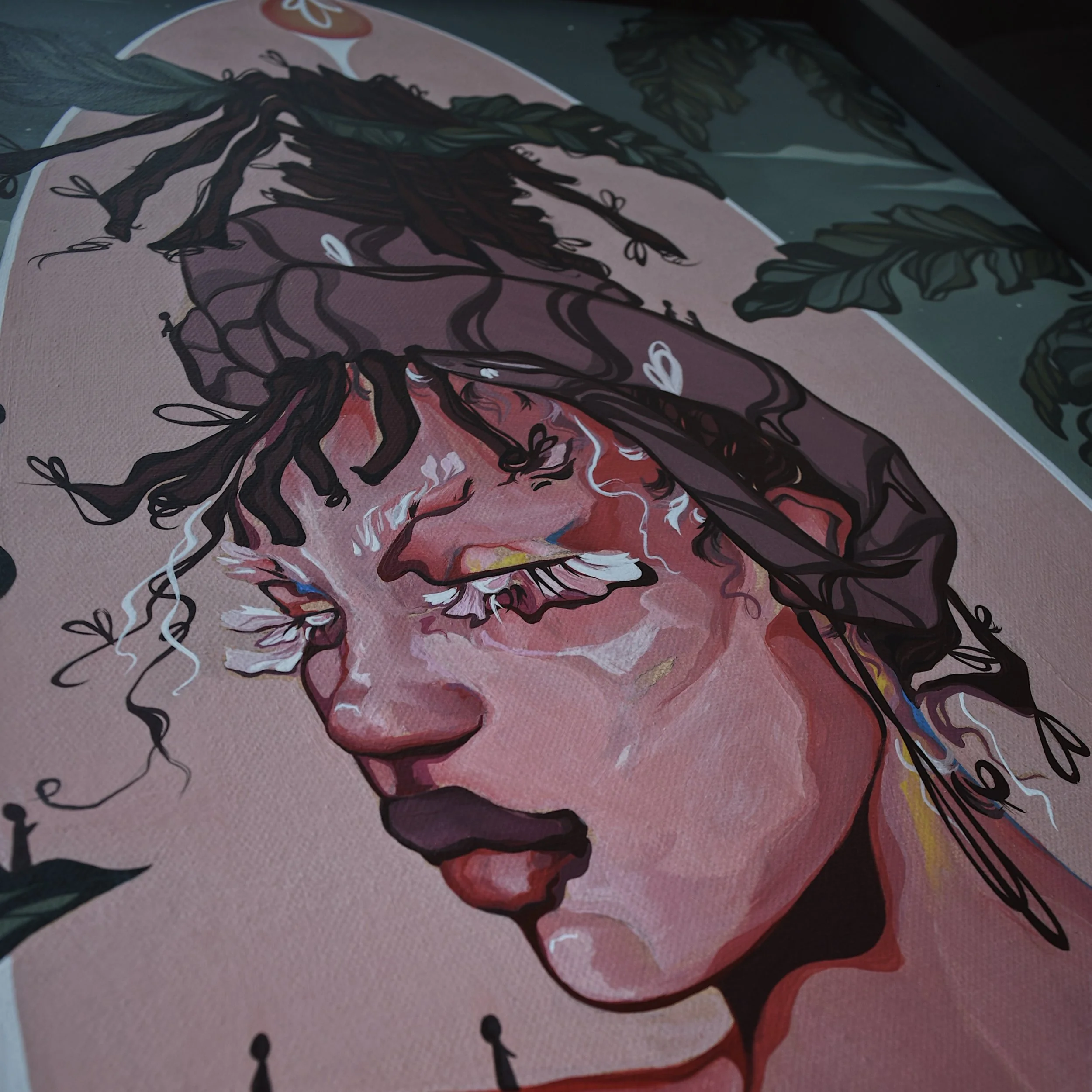 I really want to challenge myself with creating different diverse hairstyles while still making them flow throughout the piece. I’ve only ever done locs with charcoal and I love how they turned out with acrylics. I also want to create smaller/medium size canvas pieces like this more often to make it easier for people to collect original pieces at different price ranges.