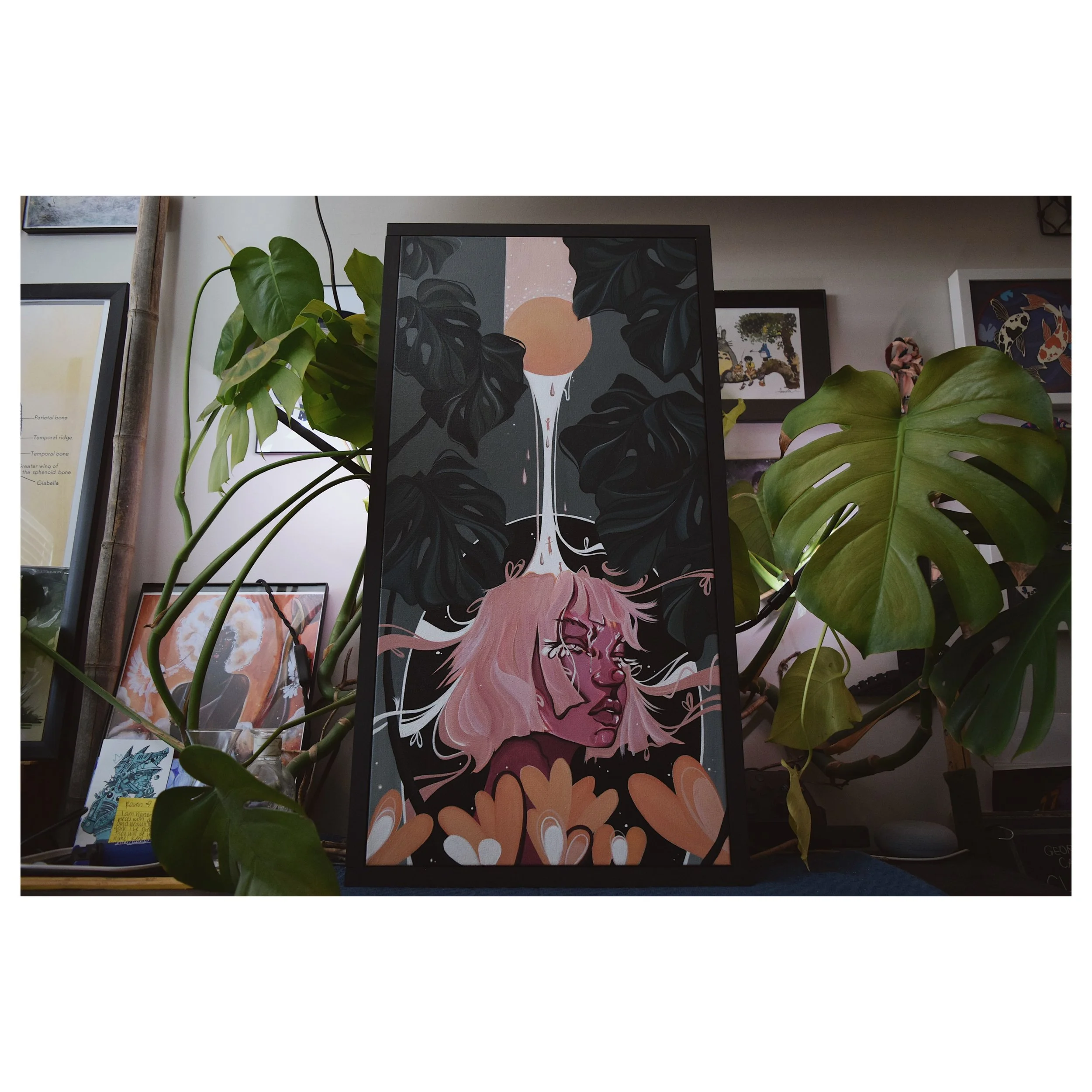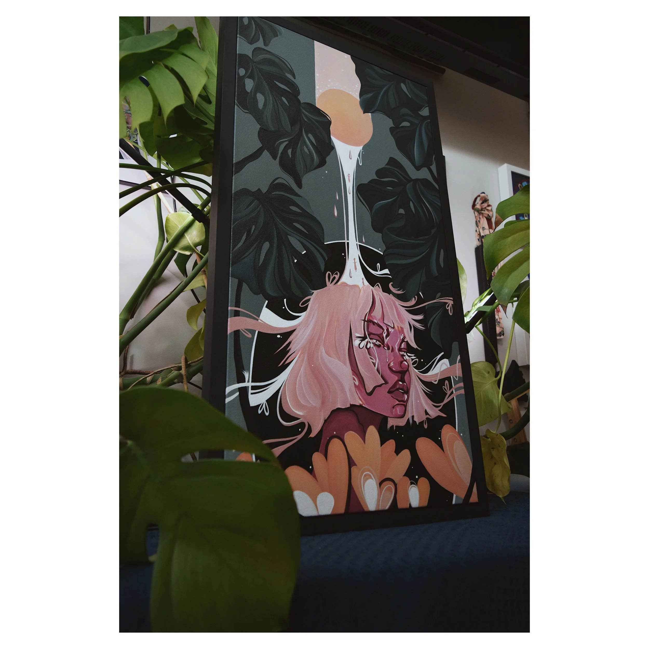 The process of creating plants in my style is so relaxing to me. I can fully vibe out with music or a background show and let the brushstrokes just fall into place. The feeling that I get from my process is the same feeling I hope to evoke when people see these pieces.