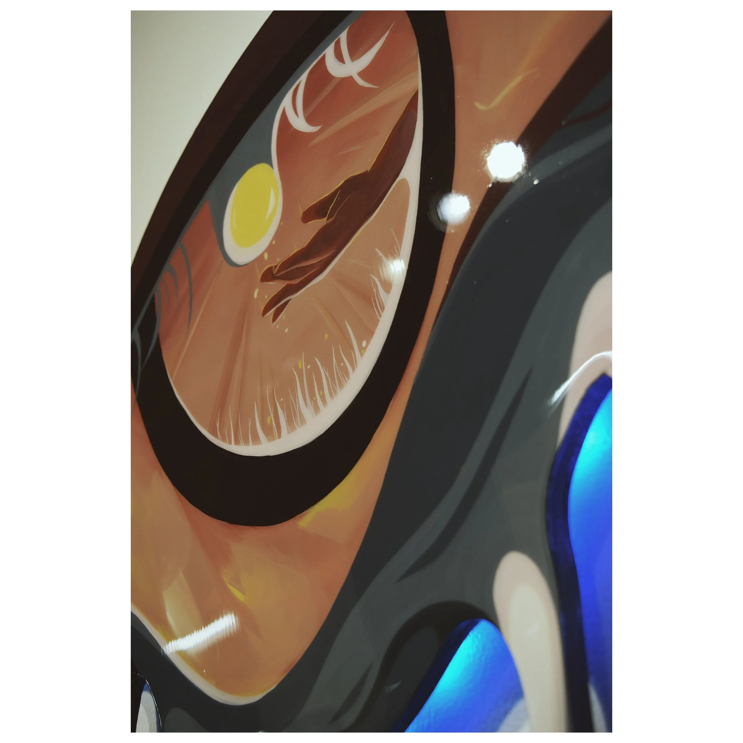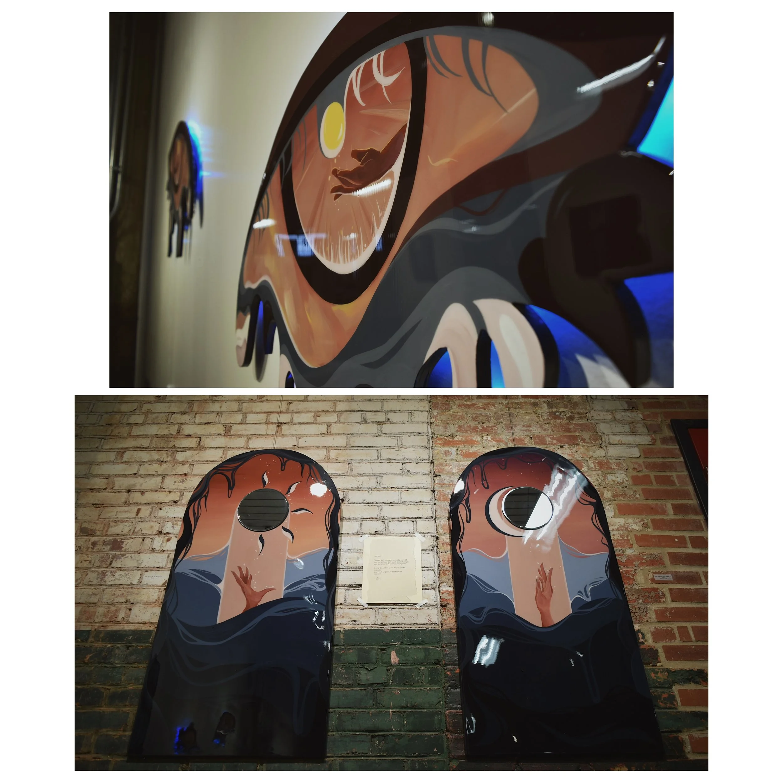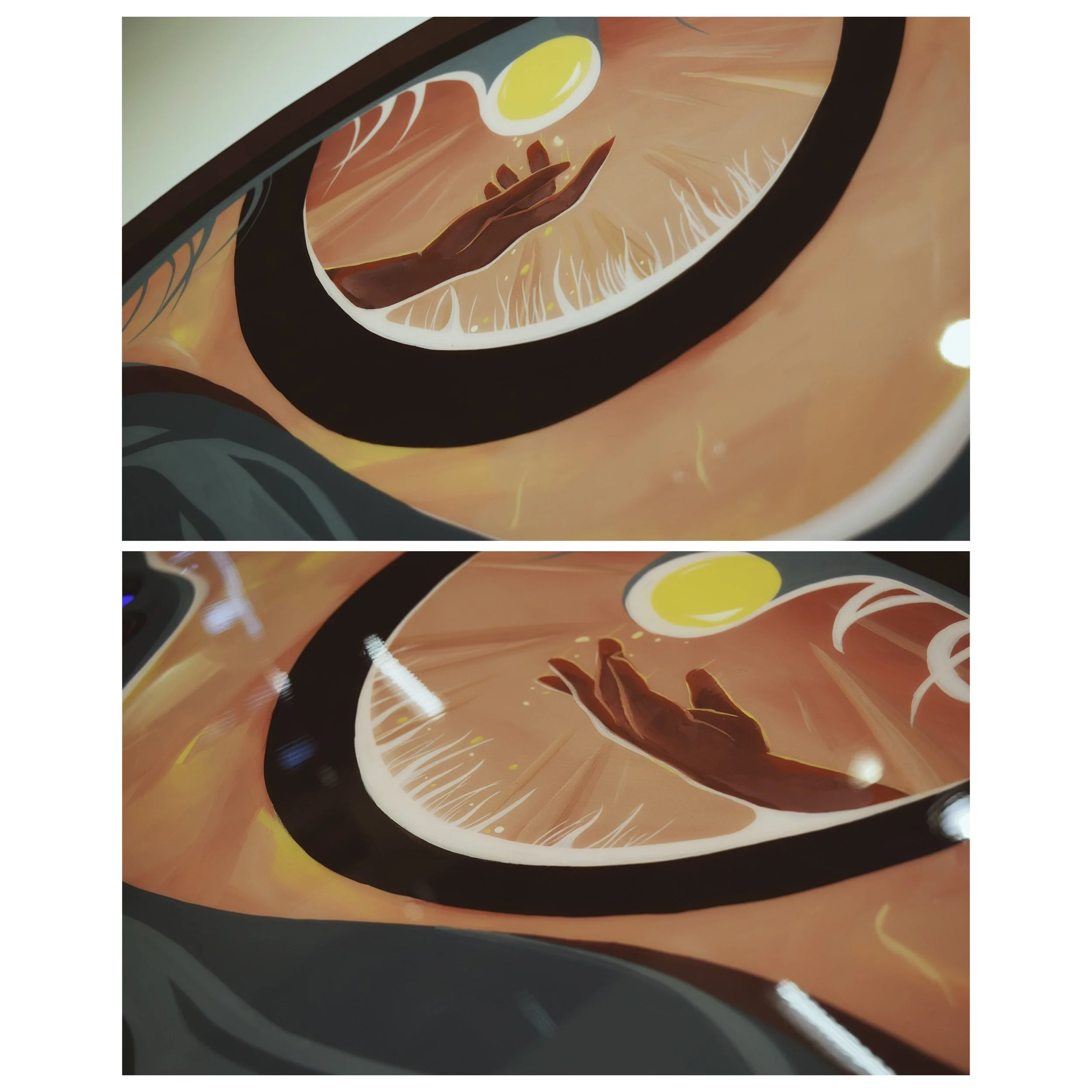 These eyes were a part of my solo show last year and they feature some of the reacurring suns and moons in this collection. They symbolize the three things we can look up to and rely on seeing/feeling every day, especially when we at times feel overwhelmed, when we feel that we don't have the support we need...