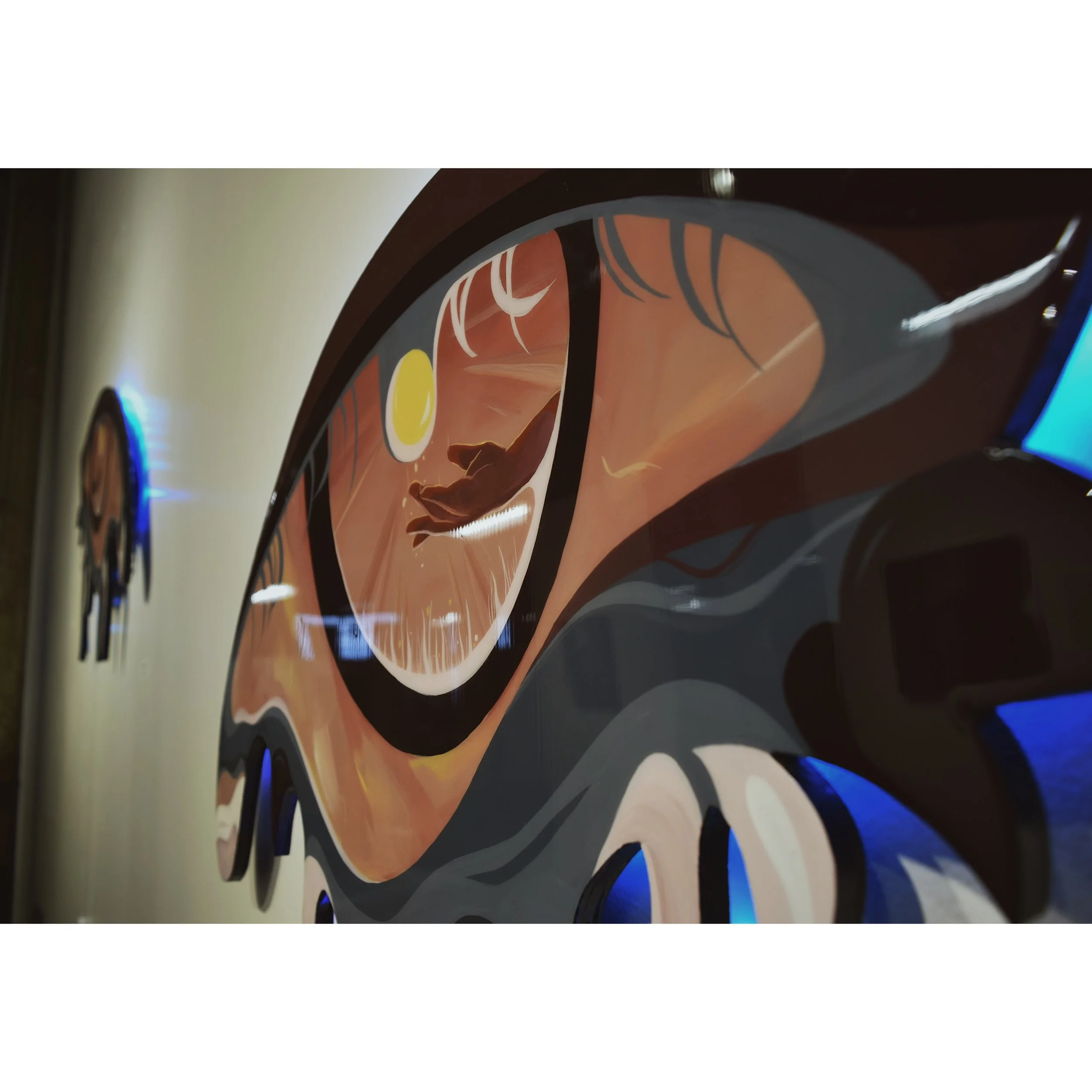 I hand cut each piece of birch wood, freehand the painting, then resin pour over top, and finally I attach LED lights to the back to create a back lit glowing effect.