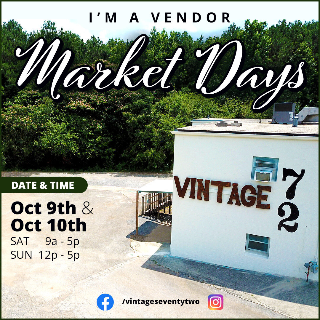 I'll be at @vintageseventytwo this Saturday 9am-5pm. This is my second event at this location and I'm sure it'll be just as fun as the first. Come see me and over 65 other vendors. Bring your friends/family and get you some art, pottery, jewelry, food, etc...